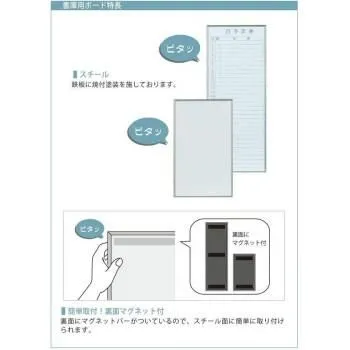 裏面のマグネットで書庫などのスチール素材にピッタリ貼り付け!!