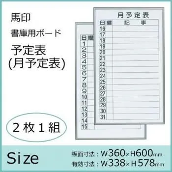 商品名:馬印 書庫用ボード 予定表(月予定表)ホワイトボード 2枚1組 W360×H600 FB637M