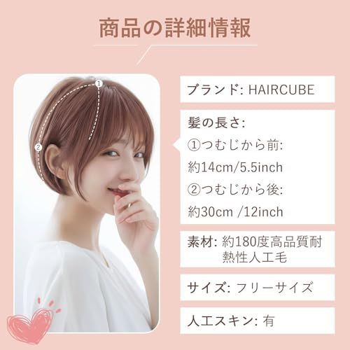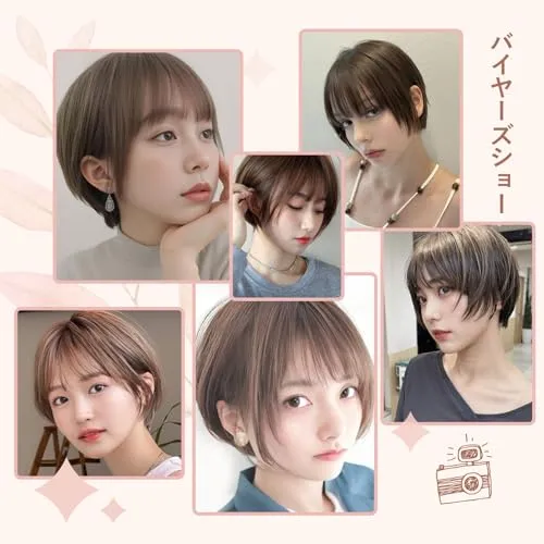 サイズ:前髪:約14cm、サイド:約25cm、後髪:約30cm;比較的シンプルなデザインのため、さまざまな頭の形や顔型に簡単に対応できます。適度な長さで、重たく見えず、日常の手入れも楽で、忙しい現代女性に最適です。