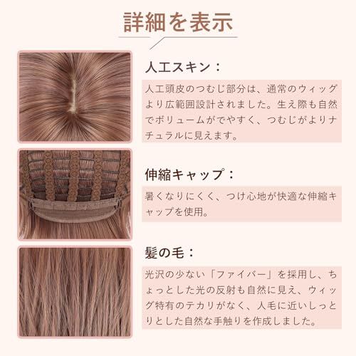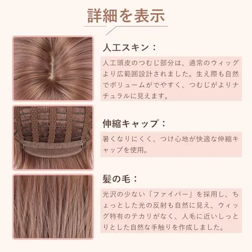 素材:このヘアスタイルは高品質な合成繊維を使用しており、耐久性と自然な感触を兼ね備えています。柔らかな手触りで、リアルな髪の光沢と質感をうまく再現しています。自然な髪と比較して、合成材料は洗浄や手入れが容易で、日常使用に適しています。