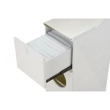 シャンプータオルを20~24枚収納可能!!使用済みタオルのシューターも付いたシャンプー補助ワゴン☆天板はステンレス材を使用していますので、濡れたものをそのまま置いてもOK!!また、薬剤などをこぼしても簡単に拭き取れます。
