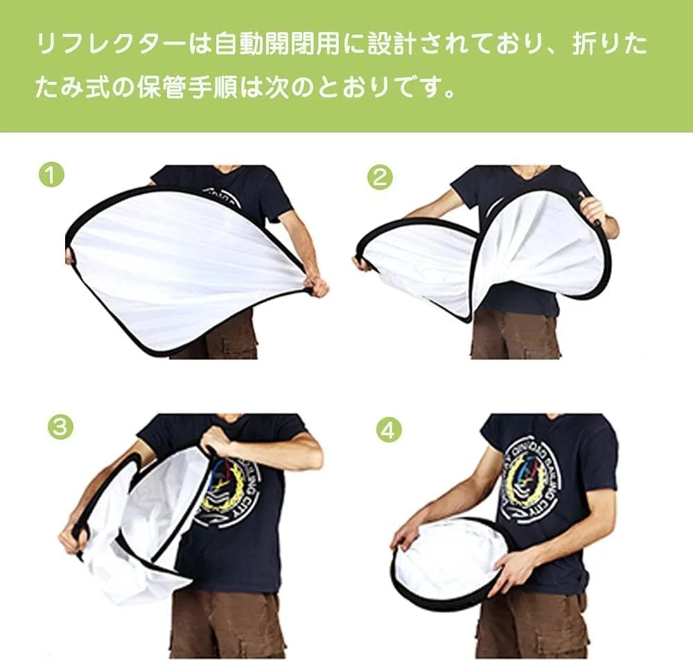 カラー:銀、白。 サイズ:直径約60cm(展開状態)、直径約23cm(収納状態)