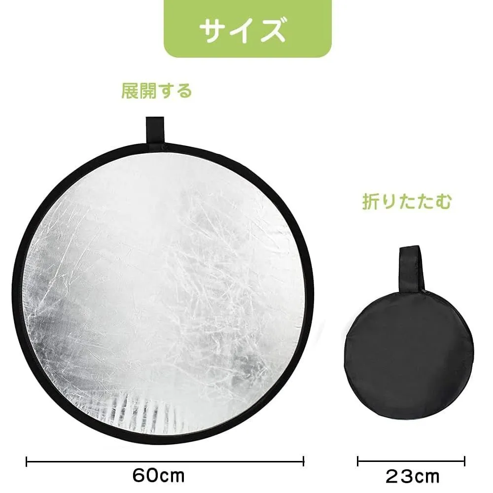 サムコス レフ板 撮影用 丸レフ板 2-in-1 銀/白 折り畳み式レフ板 スタジオ写真撮影対応 撮影スタジオキット 撮影反射 光補充用 収納ケース付き (シルバー 60cm)