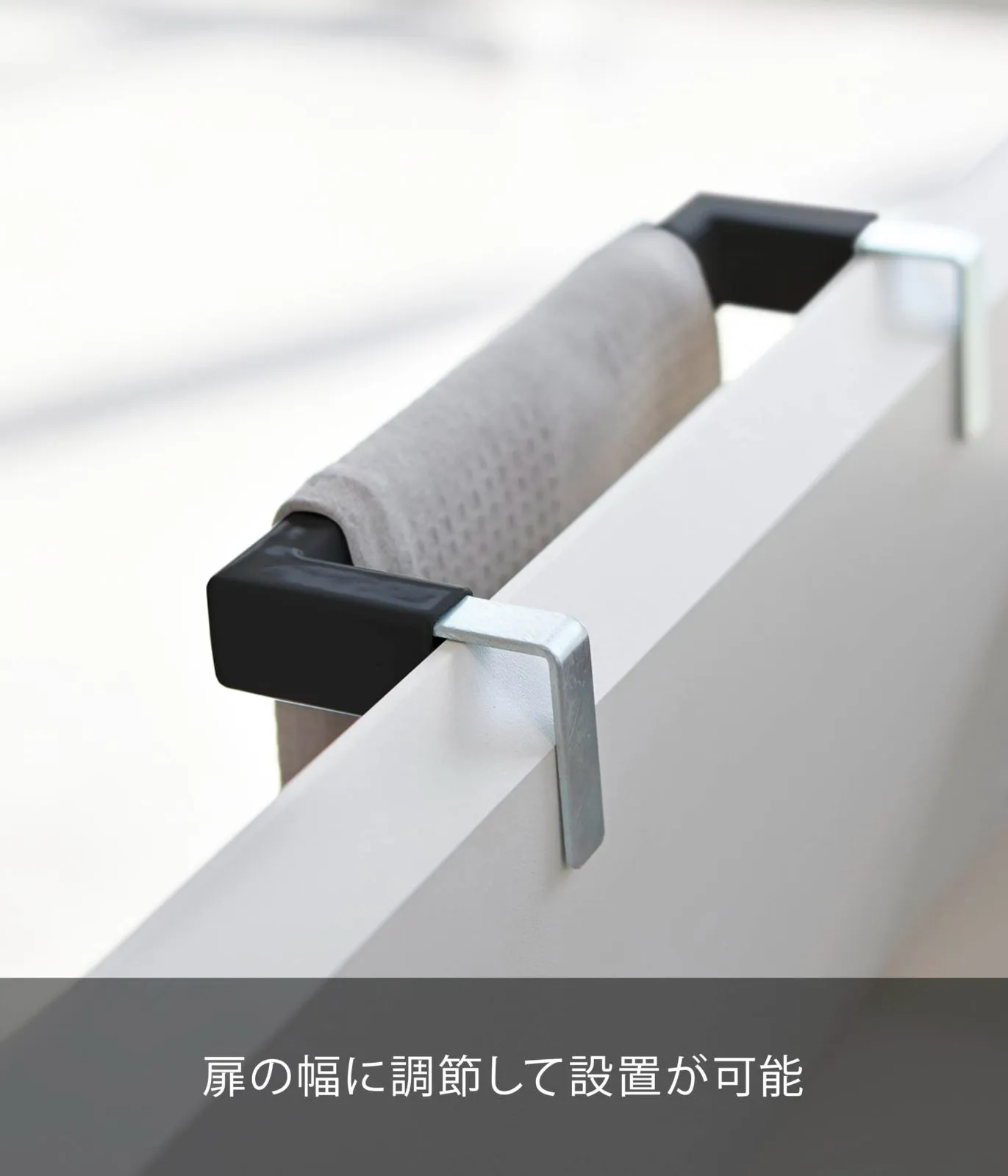 扉の厚みにぴったり調節できるスタイリッシュなタオルハンガー