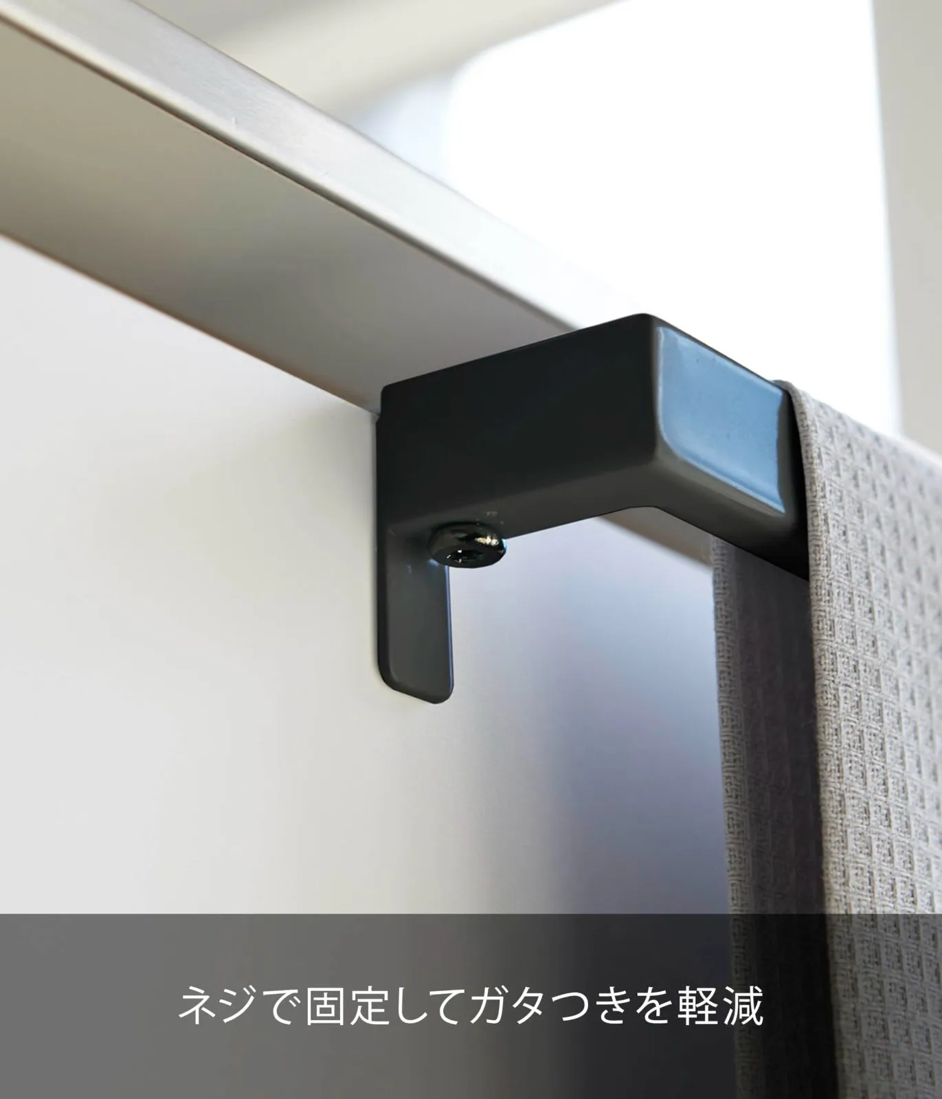 取り付けフックを扉の厚みにぴったりと調節して固定するので、ガタつきが無く、しっかりと取り付けられる