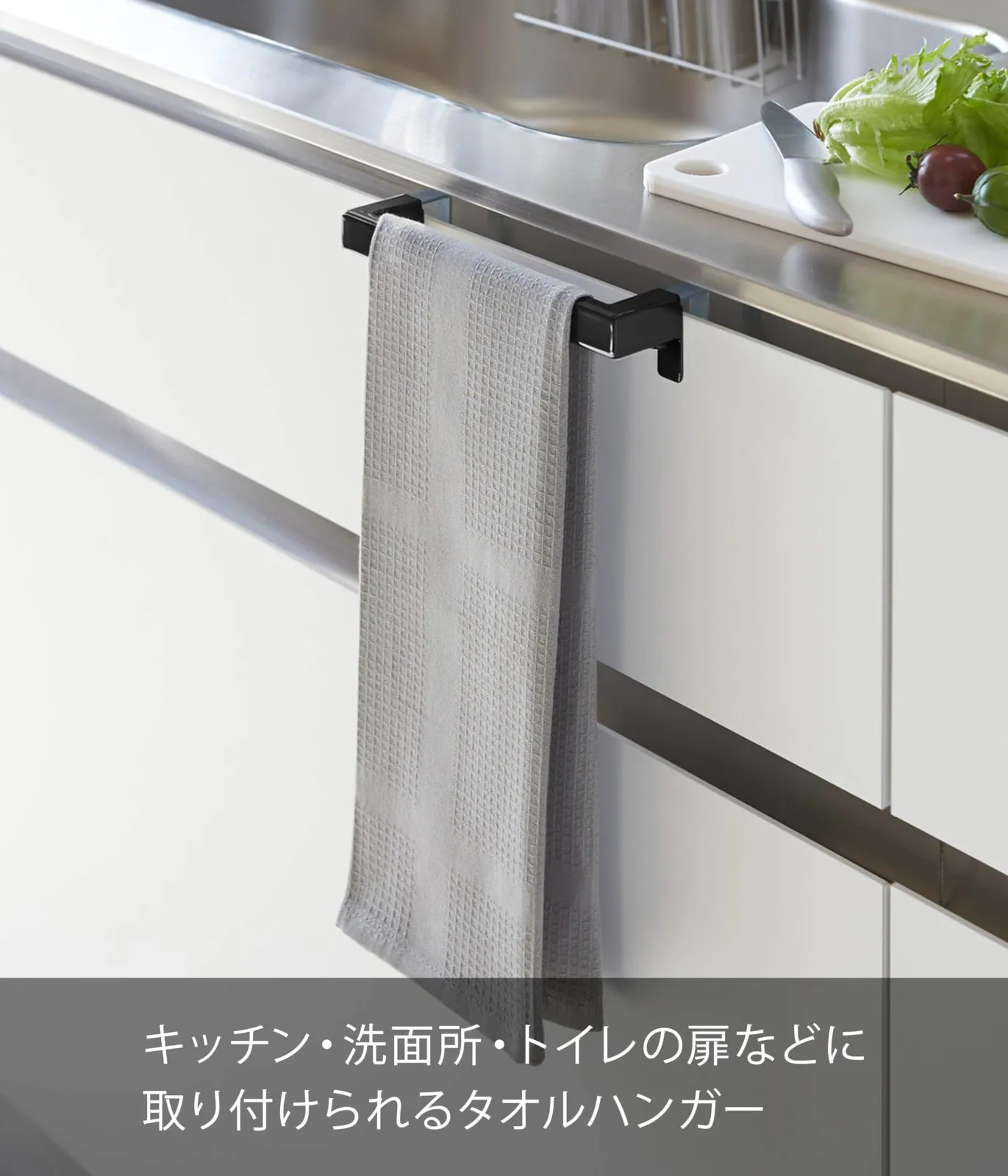 キッチン・洗面所・トイレの扉などにシンプルでスタイリッシュなデザインのタオル掛け