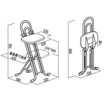 サイズW330×D390×H750×SH370~620mm、折り畳み時:W330×D90×H900mm