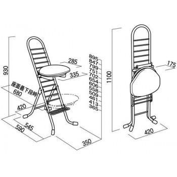 サイズW420×D590×H930×SH365~895mm、折り畳み時:W420×D175×H1100mm