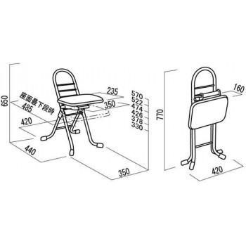 サイズW420×D440×H650×SH330~570mm、折り畳み時:W420×D160×H770mm