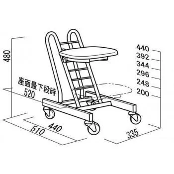 作業に合わせて最適な座面高さを選べるキャスターチェアです。座面高さを6段階にワンタッチで調整ができ、特に低い姿勢での作業に便利です。キャスター付きなので座りながら移動でき、座り直すことなく体の向きをスムーズに変えられます。