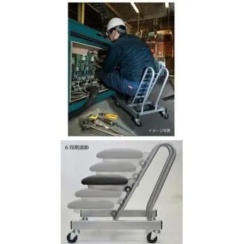 作業に合わせて最適な座面高さを選べるキャスターチェアです。座面高さを6段階にワンタッチで調整ができ、特に低い姿勢での作業に便利です。キャスター付きなので座りながら移動でき、座り直すことなく体の向きをスムーズに変えられます。