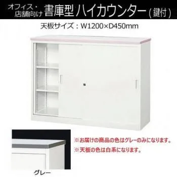 商品名:オフィス・店舗向け システムカウンター 書庫型ハイカウンター 鍵付 天板W1200×D450mm グレー・COM-CVA-12HS-G