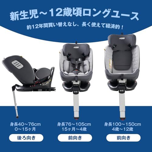 【 長く使える成長対応】新生児のデリケートな体から、12歳(身長150cm)まで対応。5点式ハーネスは肩・腰・股をしっかり固定し、成長段階に合わせて簡単調整可能。1台で長期間使える経済的な設計です。