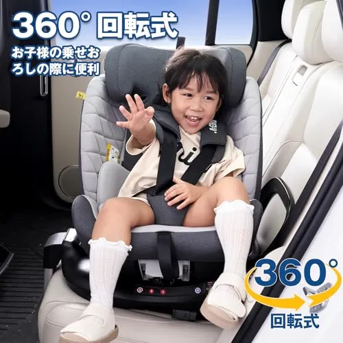 【ワンタッチ360回転機能】乗降時は片手でスムーズに回転可能。90横向き固定で抱き上げやすく、前向き/後ろ向きの切り替えも簡単。赤ちゃんの体に負担をかけない、ママパパにも優しい設計です。