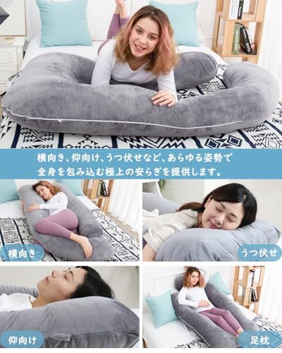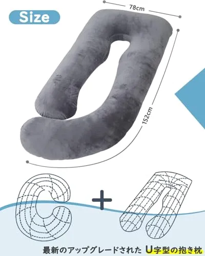 【進化したU型マタニティピロー】従来のU字型枕と異なり、片側をロングサイズ設計により、妊婦さんの体をぐるりと包み込み、全身をしっかりサポート。頭部、首、背骨、腰、ひざ、背中など、気になる部位への負担を軽減します。正しい脊椎のアライメントを保ち、安眠へと導く快適な姿勢を見つけやすくします。