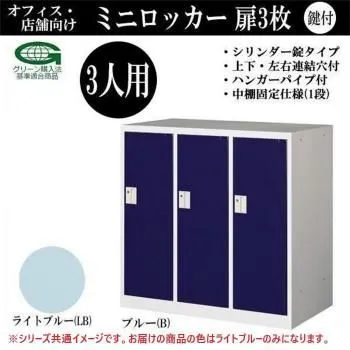 商品名:オフィス・店舗向け ミニロッカー 扉3枚 3人用 本体色:ホワイト COM-MLK3-LB・ライトブルー