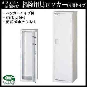 快適なオフィス空間へ。片開タイプの掃除用具ロッカー。