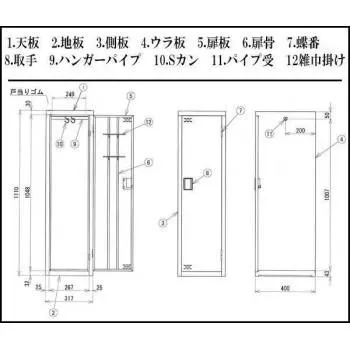 シンプルな掃除用具ロッカーです。錠前は付いておりません。ハンガーパイプ・雑巾掛けが付いて使いやすい仕様です。