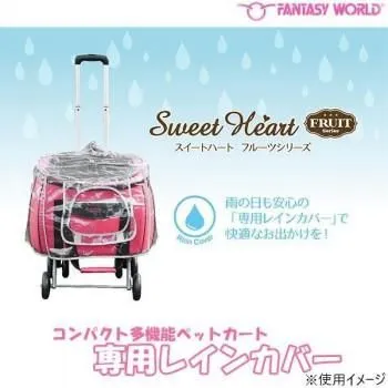 多機能ペットカート「スイートハートシリーズ」専用のレインカバーです。ピーチ・メロン・デニム・迷彩全てに適応しています。