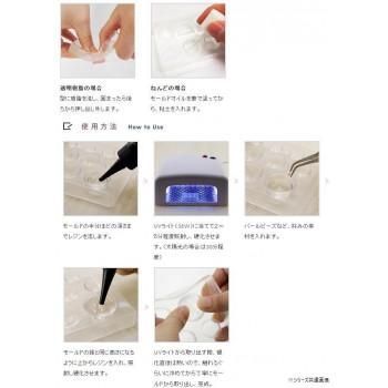 粘土や透明感のあるレジンクラフトにも楽しめる、繰り返し使えるやわらかい型です。紫外線を通す透明なモールドなのでUVレジンがきれいに固まります。また、気泡や粘土の浮きがひと目でわかって便利です。