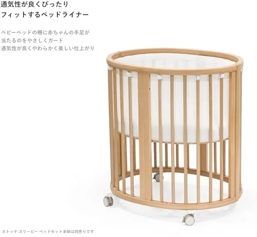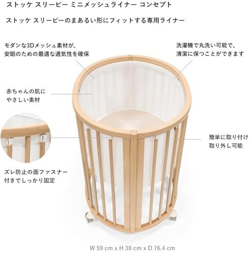 ストッケ スリーピーのまあるい形にフィットする専用ライナーは、通気性が良くやわらかく美しい仕上がりが特徴です。モダンな3Dメッシュ素材が、安眠のための最適な通気性を確保します。brbr着脱簡単なズレ防止の面ファスナー付きで定位置に固定可能。洗濯機で丸洗い可能で、清潔に保つことができます。