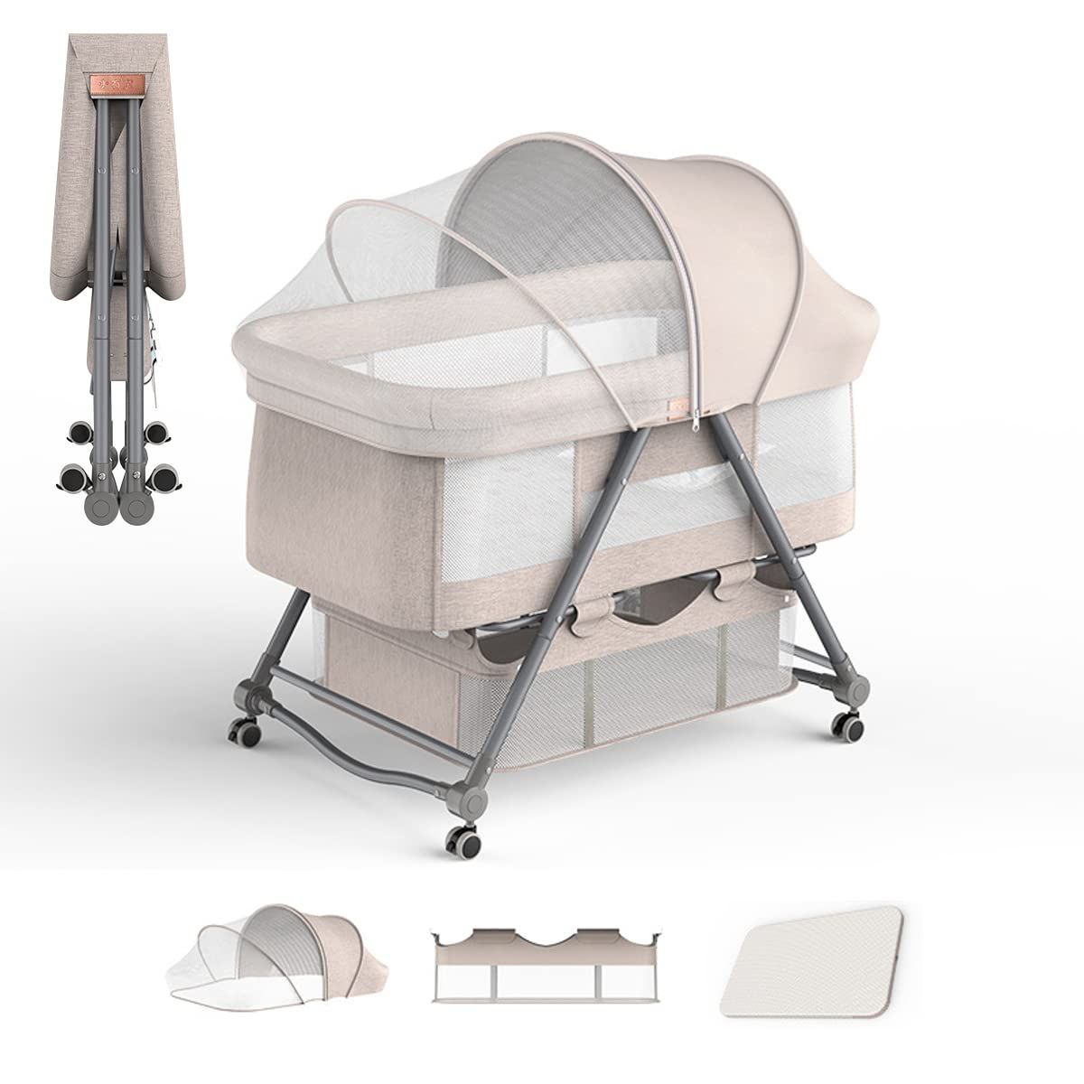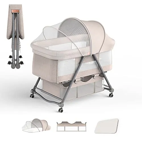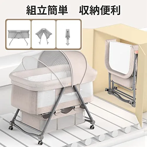 【組立簡単 ・折りたたみ式】ツールは不要で、女性一人で簡単に組み立てることができます。コンパクトに折り畳み可能(収納袋付き)、旅行先、帰省先等に持ち運び、お子様を快適な環境で眠らせてあげられます。静音キャスター付きで、床を傷つくことなくリビング、寝室への移動も楽々です。