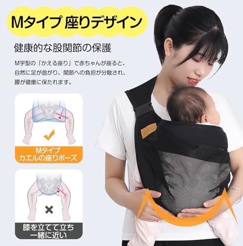 【安定】ヒップシートは伸縮性のある素材を使用。展開されたヒップシートのおかげで、赤ちゃんは背中に届き、安定していると感じることができます。肩への負担を軽減します。片手で簡単に持つことができます。