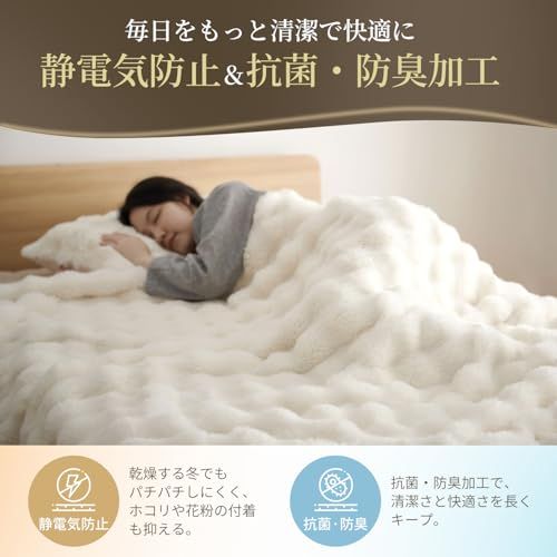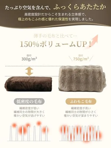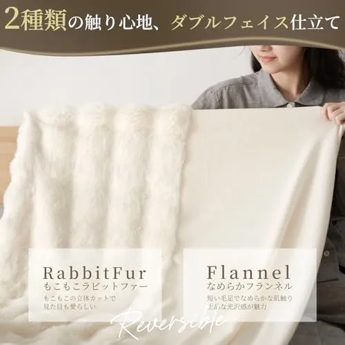 【とろけるリバーシブルの心地よさ】表はもこふわのラビットファー調、裏はしっとりフランネル。立体カットが空気をたっぷり抱え、軽いのにぬくもりがふわっと広がる。肩までくるめば、じんわりあったか。
