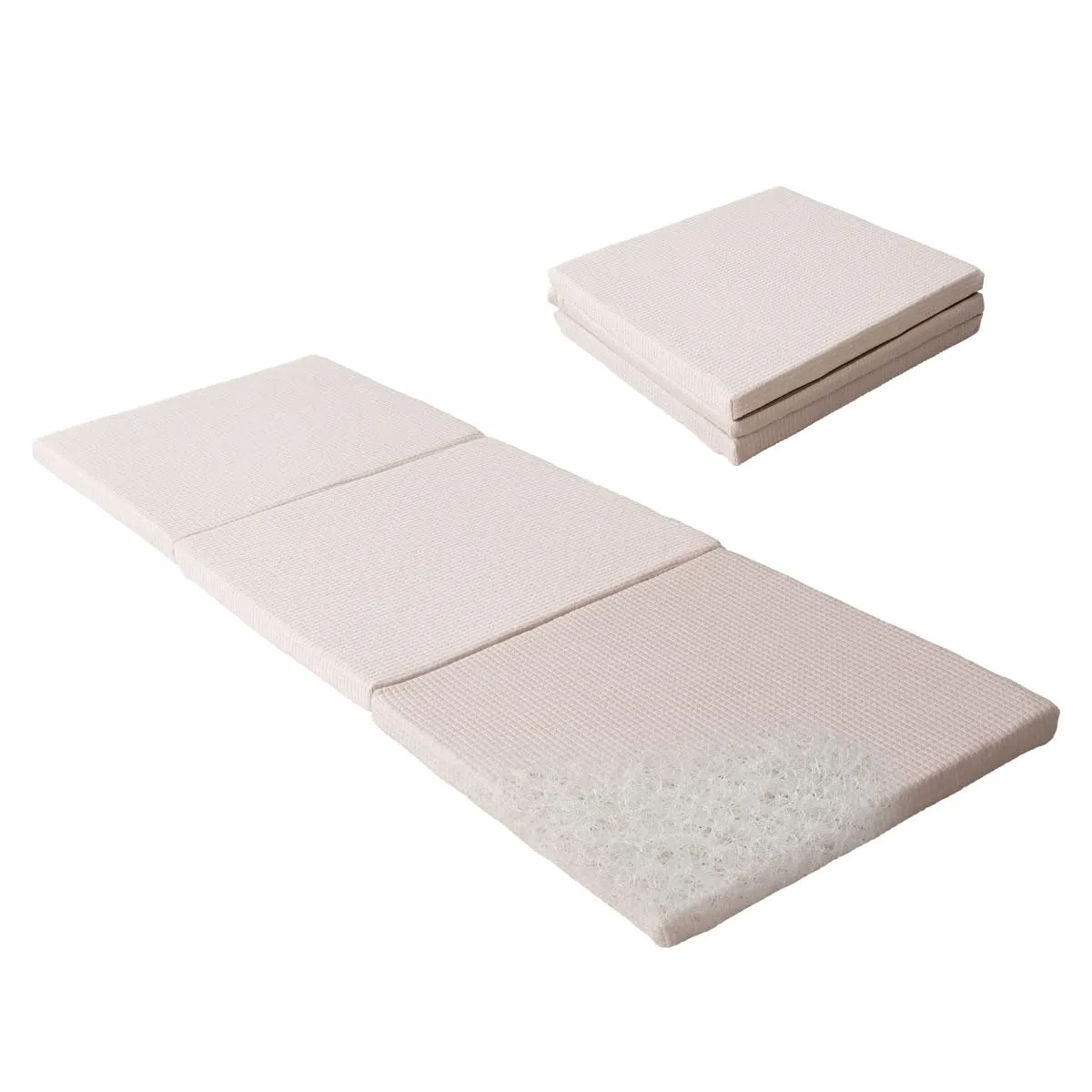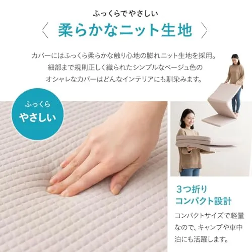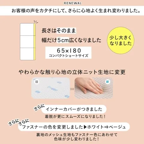 【サイズ】コンパクトショートサイズ:約幅65奥行180厚さ4cm(折りたたみ時:約幅65奥行60厚さ14cm)