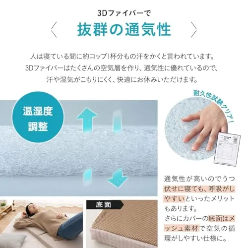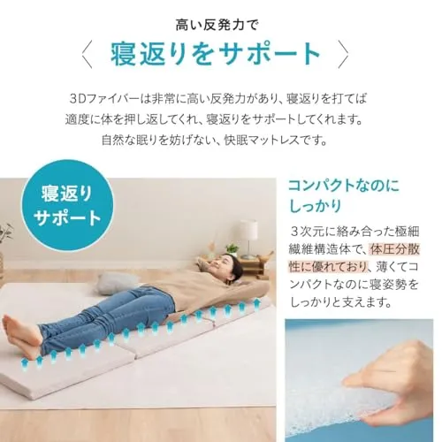 3Dファイバーは、非常に高い反発力があり、寝返りを打てば適度に体を押し返してくれ、寝返りをサポートしてくれます。自然な眠りを妨げない、快眠マットレスです。