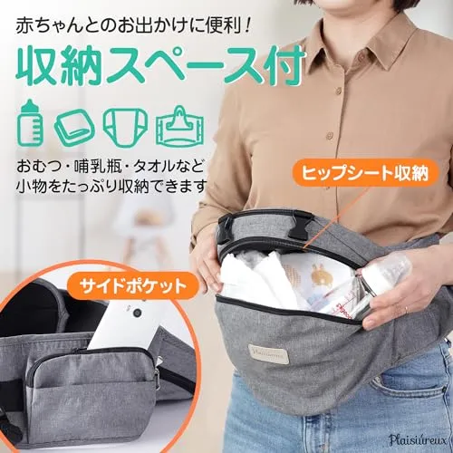 【保育士推薦×ベビモこどもに掲載】ヒップシート 抱っこ紐 抱っこひも だっこひも おんぶ紐 ベビーキャリア ウエストポーチ バッグ 赤ちゃん plaisiureux(プレジュール) (グレー)pms