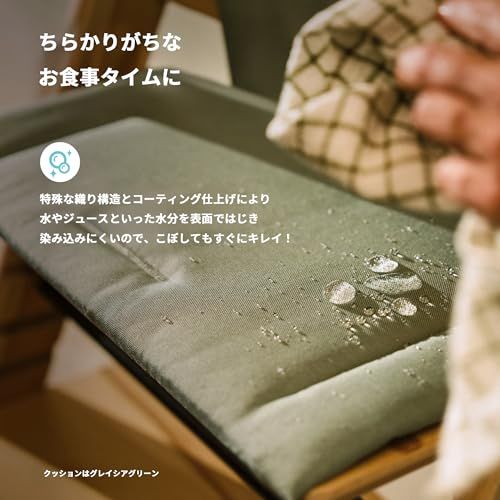 特殊な織り構造とコーティング仕上げにより、水やジュースといった水分を表面ではじき、染み込みにくいので、こぼしてもすぐにキレイ!