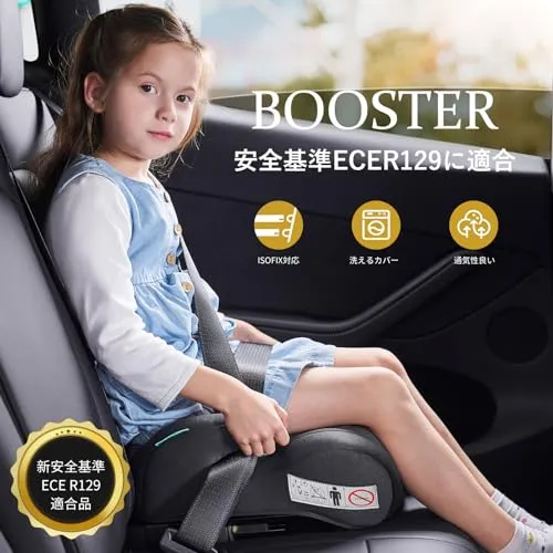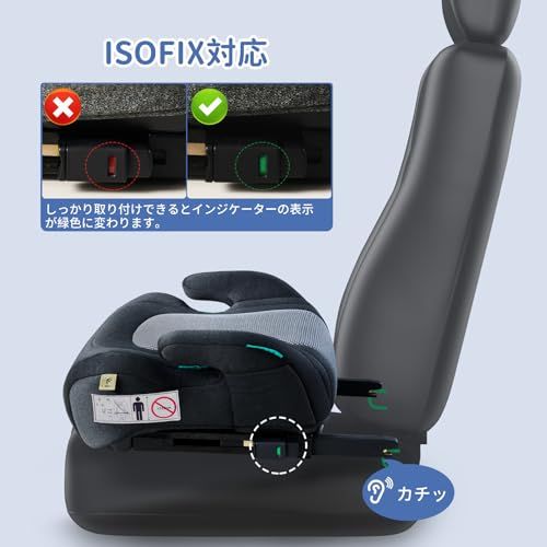 【 ISOFIX対応 】このジュニアシートはISOFIX固定で、シートのずれることを防ぎ、より安定する使用できます。また、ISOFIX対応は取り付け簡単で、取り付けミスを防ぎます。 (3点式のシートベルトのみで取り付けも可能ですが、より安定のためISOFIXあるシートをお勧めいたします。)