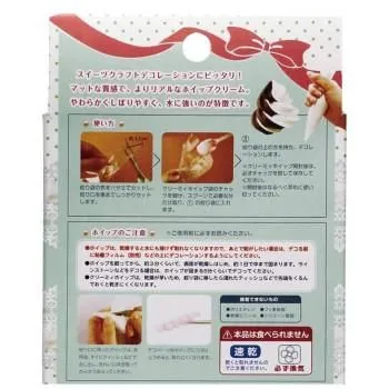 乾燥はマットな仕上がりで、リアルなホイップクリーム風の装飾ができます。 柔らかく、絞りやすく、乾燥するまでは水に溶けるのでお手入れが簡単です。