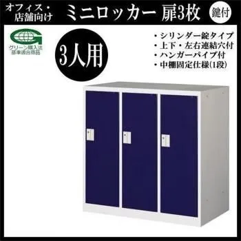 商品名:オフィス・店舗向け ミニロッカー 扉3枚 3人用 本体色:ホワイト COM-MLK3-B・ブルー