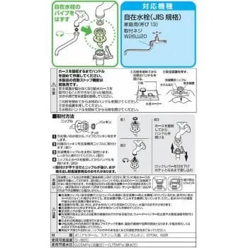 洗濯機用ニップルを混合栓に使用される場合には、逆流防止のため、逆流防止弁付の器具あるいは、湯または水のみでご使用ください。