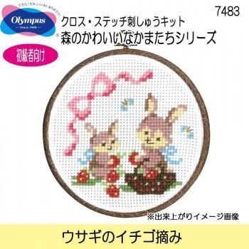 商品名:オリムパス クロス・ステッチ刺しゅうキット 森のかわいいなかまたちシリーズ ウサギのイチゴ摘み 7483