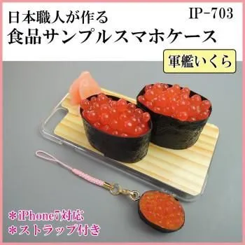 商品名:日本職人が作る 食品サンプル iPhone7ケース/アイフォンケース お寿司 軍艦いくら ストラップ付き IP-703