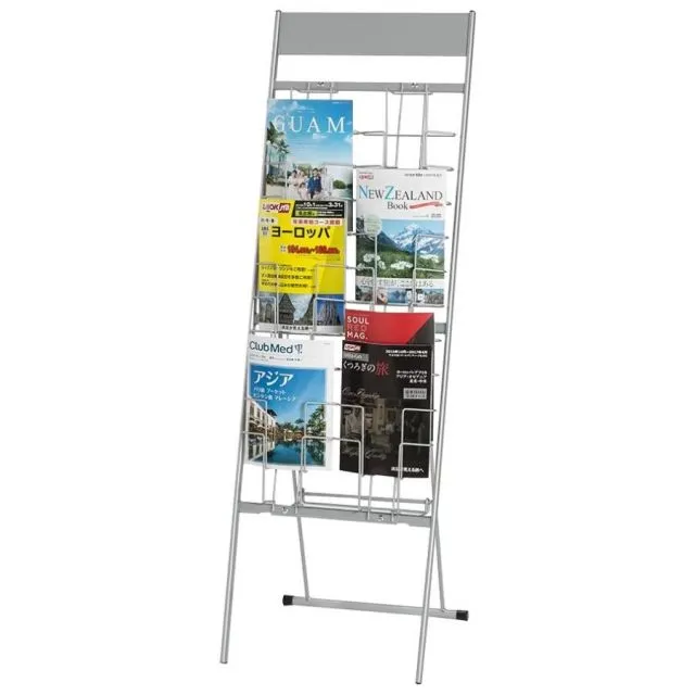 展示会や店舗販促チラシ・カタログなどA4パンフレットスタンドの定番商品。2列10段です。ワイヤー部分が湾曲しているのでチラシが倒れにくい構造になっています。