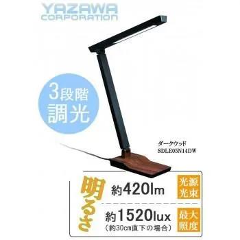 商品名:YAZAWA(ヤザワコーポレーション) 5W 3段階調光付 木目調 LEDデスクスタンドライト ダークウッド・SDLE05N14DW