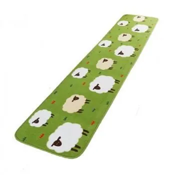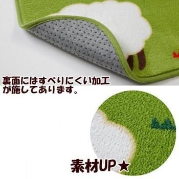 横幅約240cmのロングサイズ。とぼけた表情の羊たちがキュートなキッチンマットです。裏面にすべりにくくするための加工を施しております。