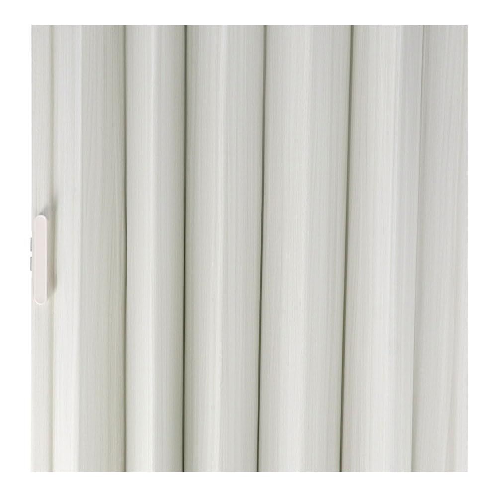 【仕様】 材質 本体・レール/塩化ビニル樹脂 中芯/ボール紙 取っ手/ABS樹脂 ランナー/ポリアセタール サイズ:約100x174cm カラー:ホワイトウッド 付属品:レールx1,磁石受け金x3、取付ネジx13