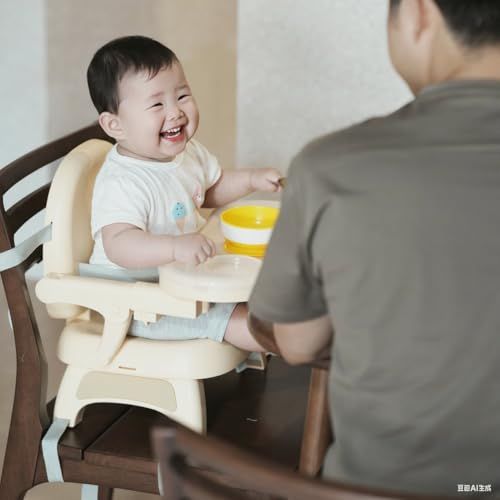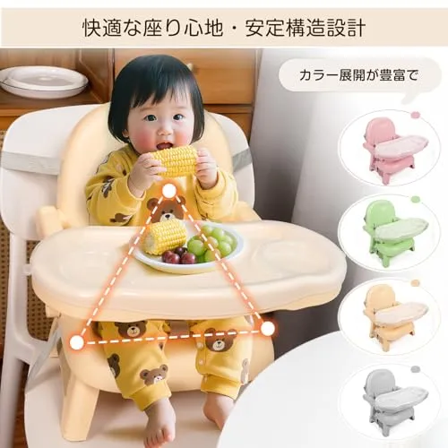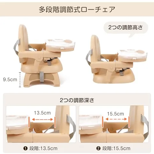 【安全で実用的なベビーローチェア】3点式ハーネスは、赤ちゃんの滑り落ちや立ち上がりを防ぎます。自宅では大人用ダイニングチェアに固定してベビーハイチェアとして使用でき、ベビーチェアの背凭れと底の固定ベルトを使って簡単に設置できます。座面幅は約26cm、椅子の脚の伸び幅は約31.5cmで、ほとんどの家庭用の大人用ダイニングチェアに適します。