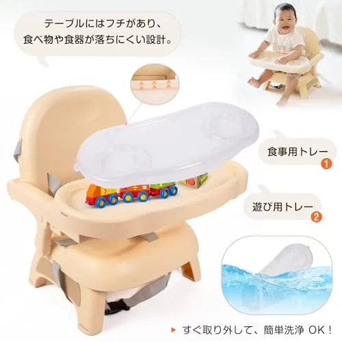【二層トレイ設計のベビーチェア】ベビーチェアは環境に優しく、無毒無害のPP素材で製造され、洗浄が簡単です。二層トレイを備えています。上段のダイニングトレイは食品グレードのPP素材で製造されます。高さを高く設計し、食べ物がこぼれないようにし、赤ちゃんに安心して使用できます。下段はプレイトレイで、トレイを取り外しておもちゃの遊びスペースとして使