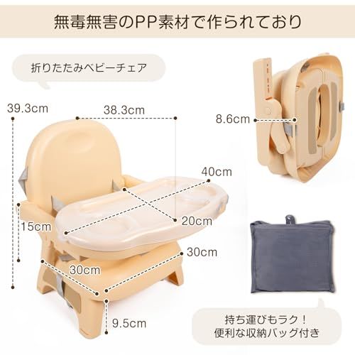 【折りたたみ式ベビーローチェア】押すと簡単に開けたり折りたたんだりできます。折りたたんだ後、約15cm薄いので、狭いスペースに収納したり、スーツケースに入れたりするのに便利です。重さはわずか1.96kgで、素敵な収納袋が付いているので、持ち運びにも便利です。自宅での利用のほか、子供の外食にも利用できます。