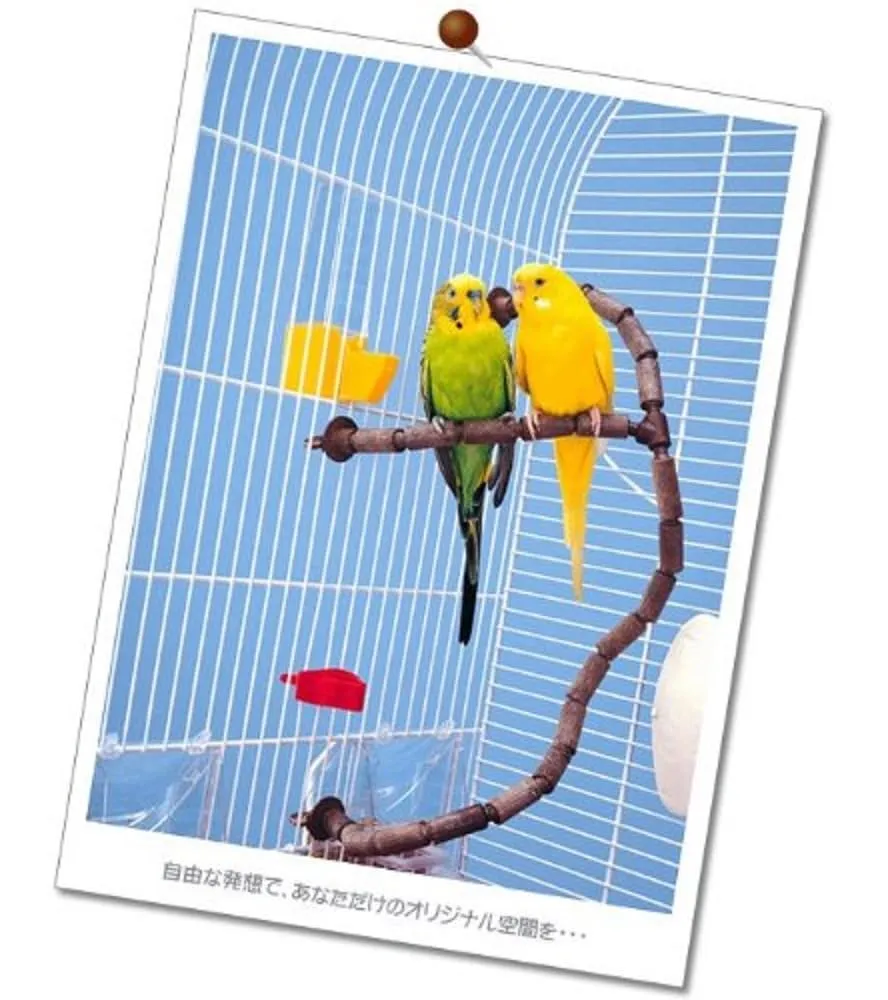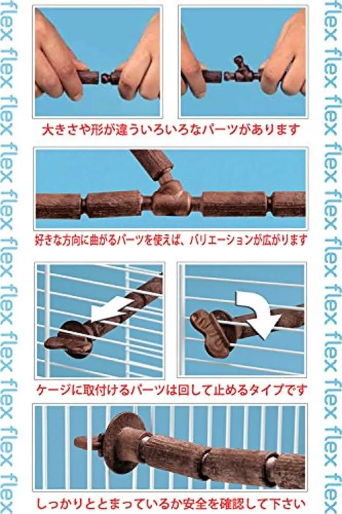 6種類のパーツを使って、ケージ内で組立可能な止まり木。