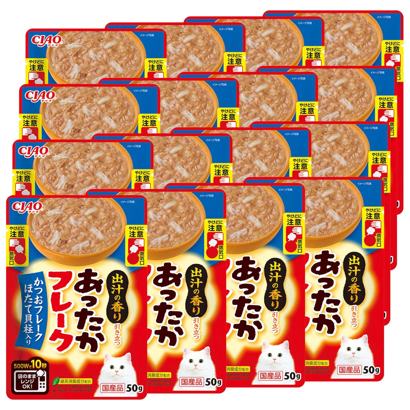 新品 チャオ (CIAO) あったかフレーク かつおフレーク ほたて貝柱入り 猫用フード 50g×16