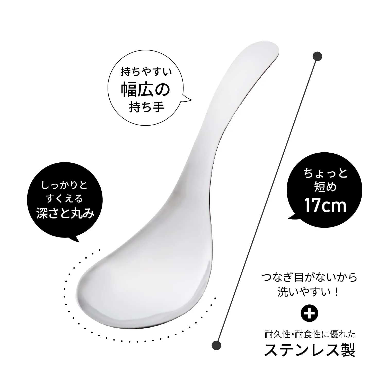 【絶妙サイズ】取り分け用のスプーンの持ち手がお皿から飛び出して邪魔だなを解決する、全長17cmで少し短めだけど邪魔にならない「絶妙サイズの取り分けスプーン」。食器洗い乾燥機にも入れやすいサイズで、お使いになったあとの収納性が良いのも嬉しいポイント。