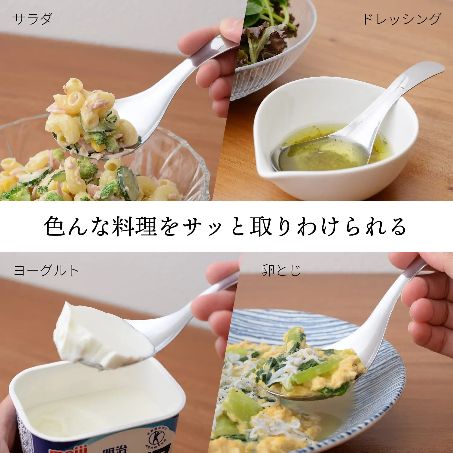 【すくいやすい】しっかりとすくえる広くて深めのすくい部は、炒めものや煮物、サラダやドレッシングなどの液体までサッと取り分けることができます。