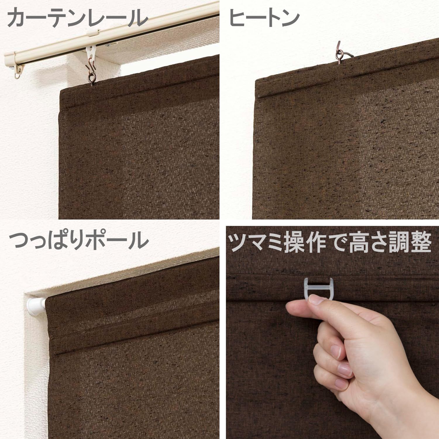 ・ツッパリポールやカーテンレール・付属フックで取付可能